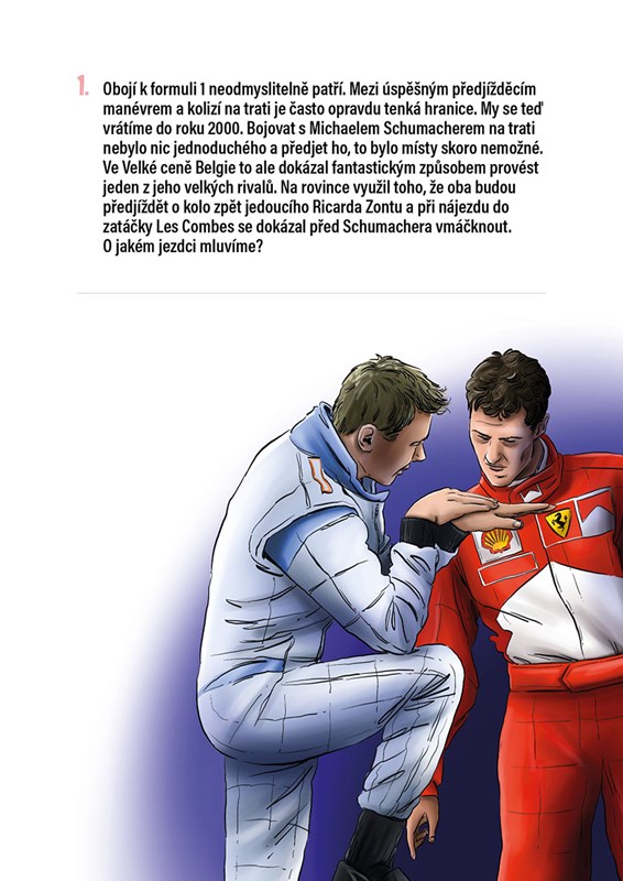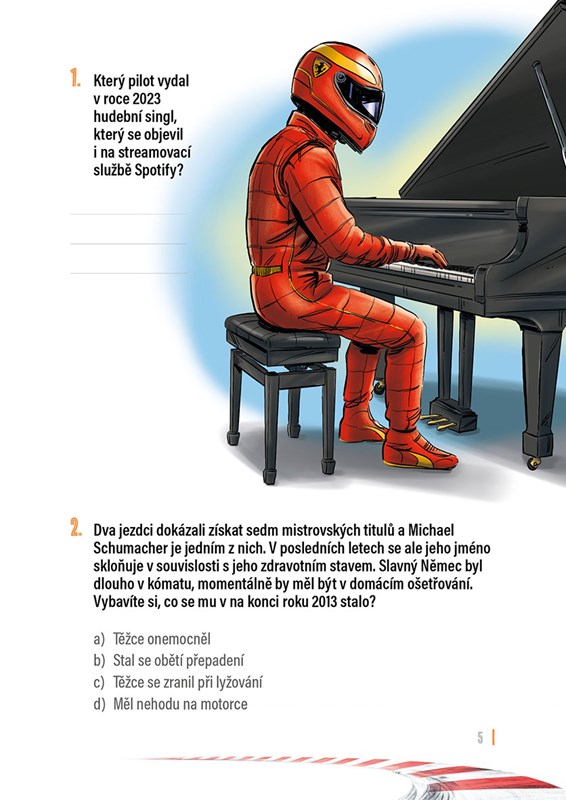 Připoutej se, červená světla právě zhasínají a kvízová Grand Prix startuje! Tahle otázkami nabitá kniha dokonale prověří tvé znalosti o F1, a to zábavnou a hravou formou. Čekají na tebe stovky otázek ze současnosti i historie královny motorsportu, skvělé ilustrace i fotografie. Poznáš legendární jezdce? Tipneš si, kdo byli a jsou ti největší rivalové? Orientuješ se v pravidlech? Uhádneš slavné okruhy, rekordy či nezapomenutelné hlášky přímo z kokpitu? Dokaž, že F1 je tvůj obor a že se opravdu vyznáš ve světě monopostů, týmových strategií a špičkového adrenalinu.