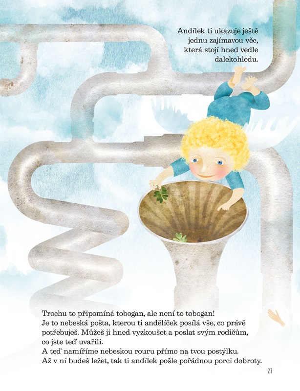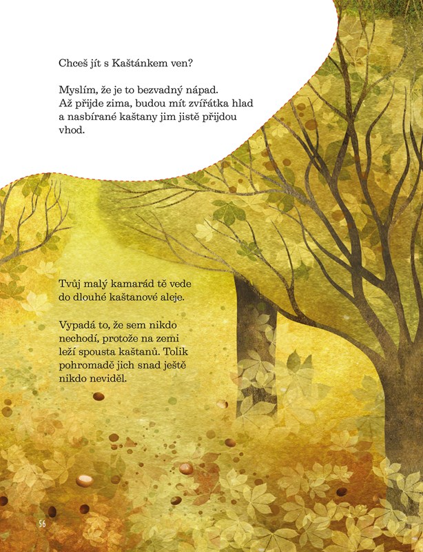 Když otevřeš tuto knížku, objevíš říši plnou kouzel. Můžeš se vydat do čarovných skal, které se rozestoupí, když se jich dotkneš. Nebo vyšplháš po zlatém žebříku až do nebe. S Kaštánkem objevíš v aleji tajemný strom, budeš si povídat se sněhovými vločkami a stavět s nimi sněhuláka. Taky se projedeš s Hvězdičkou ve Velkém voze po noční obloze a v lese se naučíš najít skřítka Vítka.