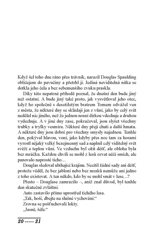 Je rok 1928 a v malém městečku ve státě Illinois začalo léto. Dvanáctiletý Douglas Spaulding má napilno: lisuje pampeliškové víno, pobíhá po lesích v nových teniskách, musí se svézt tramvají, která brzy ustoupí modernějším autobusům, a zachránit figurínu čarodějky z rukou hrubiána pana Blacka. K letní pohodě ospalého města se přidávají i ostatní obyvatelé, ale idylu jim přece jen něco kazí – tajemný Samotář, který jako postrach obchází ulicemi...