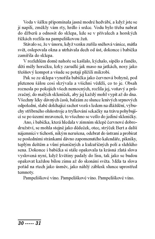 Pampeliškové víno představuje Bradburyho v poněkud odlišném světle než jeho díla z žánru science fiction či hororu. Prostřednictvím volně propojených příběhů autor nostalgicky vzpomíná na chlapecká léta strávená na americkém středozápadě. Ani v těchto vzpomínkách, v nichž se všední realita prolíná s fantastickými událostmi, se ovšem nezapře Bradburyho nesmírná imaginace a smysl pro tajemno, které čtenáři tak dobře znají z celé jeho tvorby.