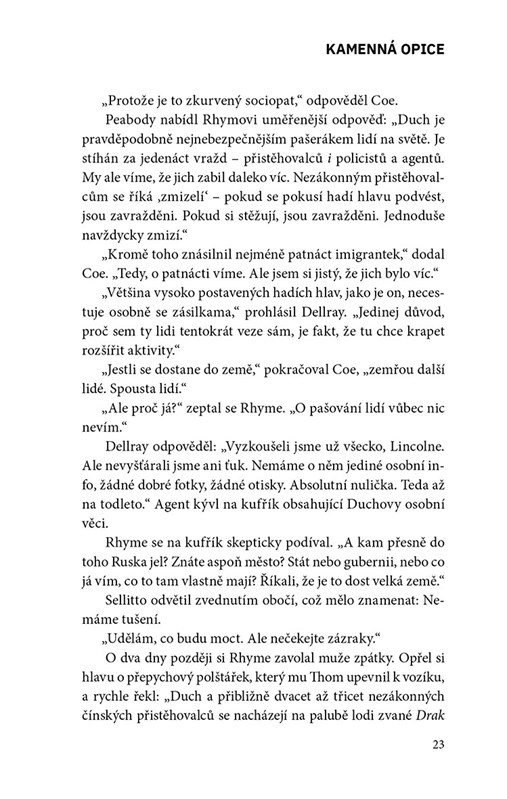 Rhyme a Sachsová na stopě brutálnímu pašerákovi lidí. Čtvrtý případ Lincolna Rhyma.