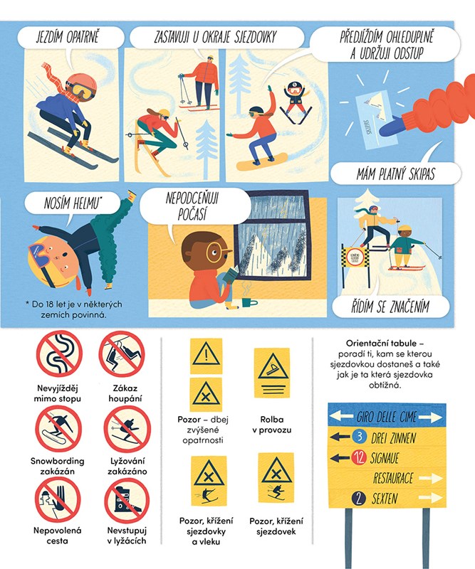vědět. Třeba jak zabrzdit, proč mít na hlavě helmu nebo jak dlouhé lyže jsou pro