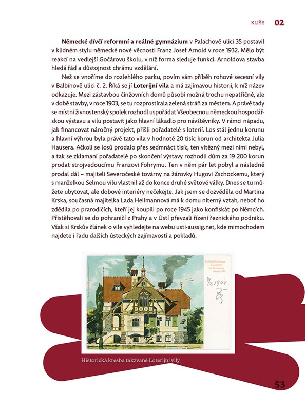 Existuje lepší způsob, jak poznat Ústí nad Labem, nežli se po něm projít? Existuje! Projít se po něm s knihou. S knihou – malým průvodcem dějinami i současností města. Můžete spolu prožít a vychutnat několik různorodých procházek, listovat, pročítat, zastavovat se, porovnávat. Dozvíte se více o Schichtově mýdlovém impériu, vilách místních dávných průmyslníků, centru poznamenaném bombardováním i socialistickou asanací, romantické Větruši či mocných Masarykových zdymadlech Ulice, sochy, budovy úřadů, škol, obchodů i bytové domy vám před očima budou vyprávět své unikátní příběhy, vzpomínat na své návštěvníky, stavitele a obyvatele, na dramata i všední život, jenž se v nich odehrál.