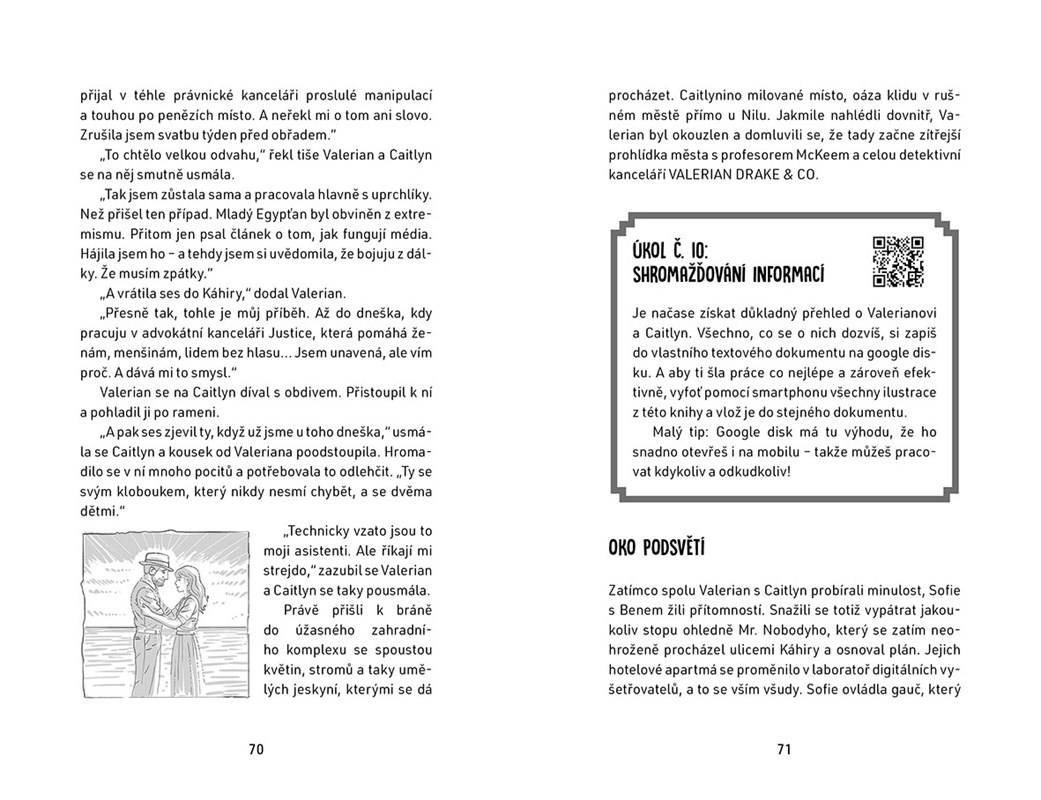 Sofie není žádná IT začátečnice, ale stále se má co učit od mistra virtuálního světa Bena. Společně s jejím strýcem Valerianem tvoří detektivní kancelář a řeší případy na zakázku. Valerian dětem ukazuje, jak vypadá poctivá detektivní práce, a ony ho na oplátku seznamují se světem informatiky. Další případ je zavede do Káhiry, kde se potkají nejen s nebezpečím, ale i s Valerianovou kamarádkou z dětství - právničkou Caitlyn. To, co se naučí hlavní hrdinové, si můžeš vyzkoušet i ty díky interaktivním IT úkolům v knize! Dobrodružství plné hádanek, napětí i technologických výzev právě začíná!