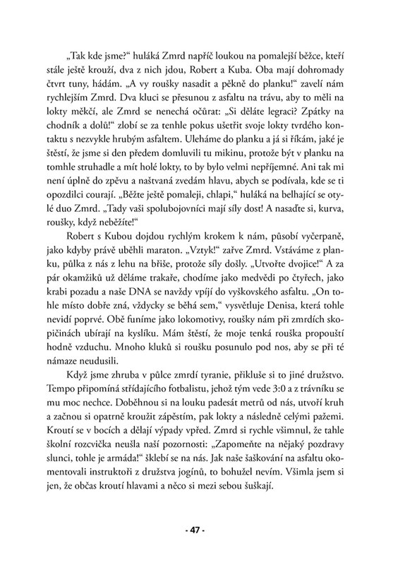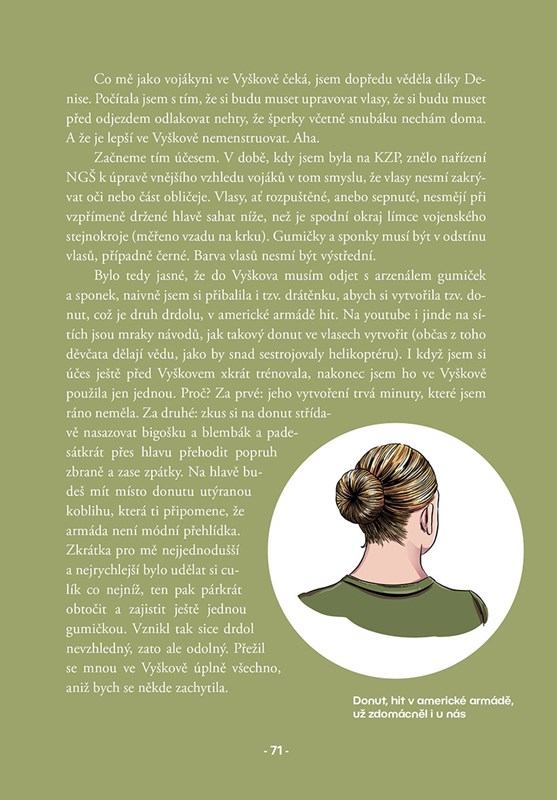 Že nevíte, kdo je Zmrd? Ikonický vyškovský instruktor, známý drtič rekrutů. A i když jsem se předem poctivě připravovala – fyzicky i psychicky – přišly chvíle, na které se prostě připravit nedá. Výcvik mě dostal na dno, ale právě tam jsem objevila, co ve mně skutečně je a jak moc mi na armádě záleží. Na cestě do uniformy jsem potkala hrdiny i padouchy, sáhla si na dno i na vrchol. A když jsem se po týdnech dřiny mohla konečně opět nadechnout, otevřely se přede mnou nové dveře. Do světa, který už navždy zůstane součástí mého života.