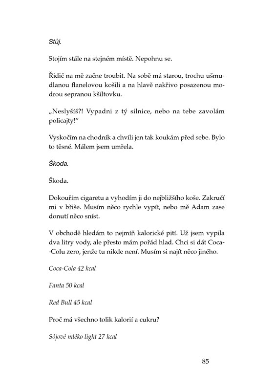 Anna má skvělé rodiče, koníčky, spoustu přátel, první lásku. Jenže její idylku naruší Ana. Není to nová kamarádka, ale anorexie, která ji postupně proměňuje v hromádku neštěstí. Její život ovládne jídlo a počítání kalorií. Ana s sebou navíc přináší bulimii, deprese, lži a izolaci od okolí. Kniha čerpá ze skutečných událostí a nabízí autentický pohled na poruchy příjmu potravy.