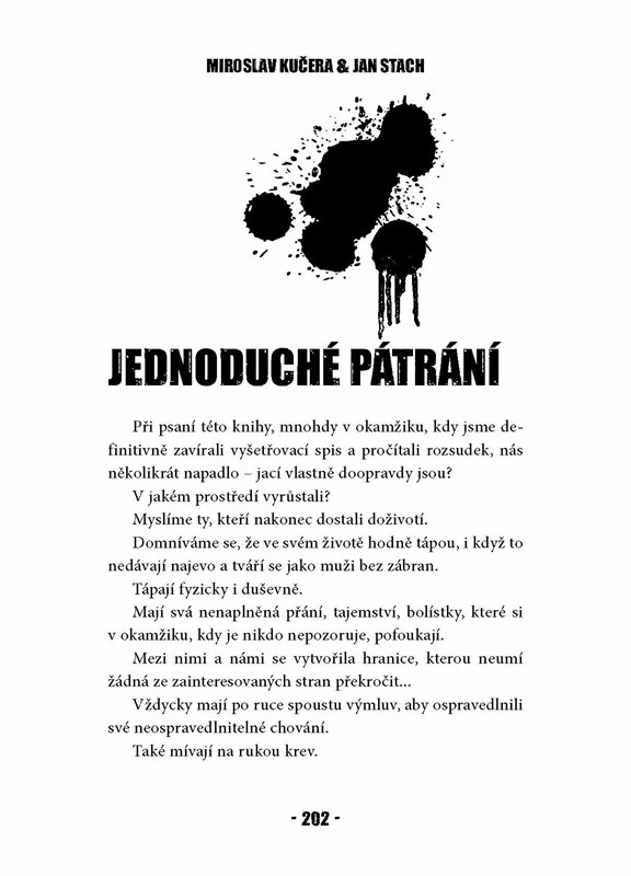 Roubal, Vocásek, Biederman, Lazok, Večeřa, Kajínek, Černý, Kukačková… To jsou jen některá jména ze seznamu pachatelů těch nejtěžších kriminálních zločinů, které náš právní systém trestá doživotním odnětím svobody. Co provedli? Jak byli dopadeni? Jak se dnes mají – a žijí vlastně vůbec? Miroslav Kučera, bývalý člen pátracího oddělení někdejší Federální kriminální ústředny a žák legendárního kriminalisty Jaroslava Zahrádky, a Jan Stach, bývalý kriminalista, zmapovali nejstrašnější případy novodobé historie české kriminalistiky. Cílem obou autorů nebylo čtenáře šokovat, ale především mu přiblížit složitou a mnohdy náročnou práci kriminalistů, jejichž zásluhou se ti nejnebezpečnější pachatelé ocitli v rukou spravedlnosti. Netěšte se na líbivé čtení – jde o skutečnou výpověď lidských osudů a memento událostí, jež mnoha lidem navždy změnily život.