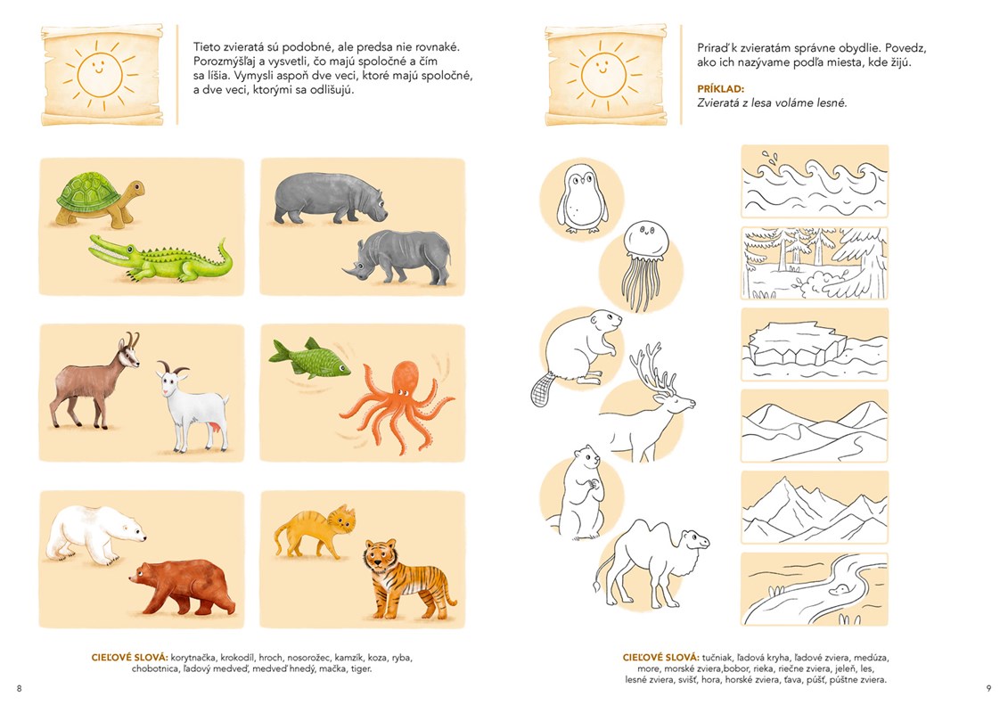 Zošit ponúka osvojenie si nových pojmov, pochopenie súvislostí, rozvíjanie porozumenia reči a tvorby zámen.