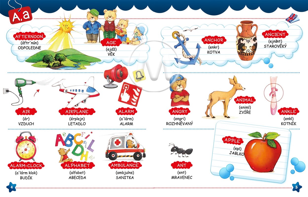 Tento slovník pomáhá dětem poznat a naučit se nejpoužívanější slova v angličtině.