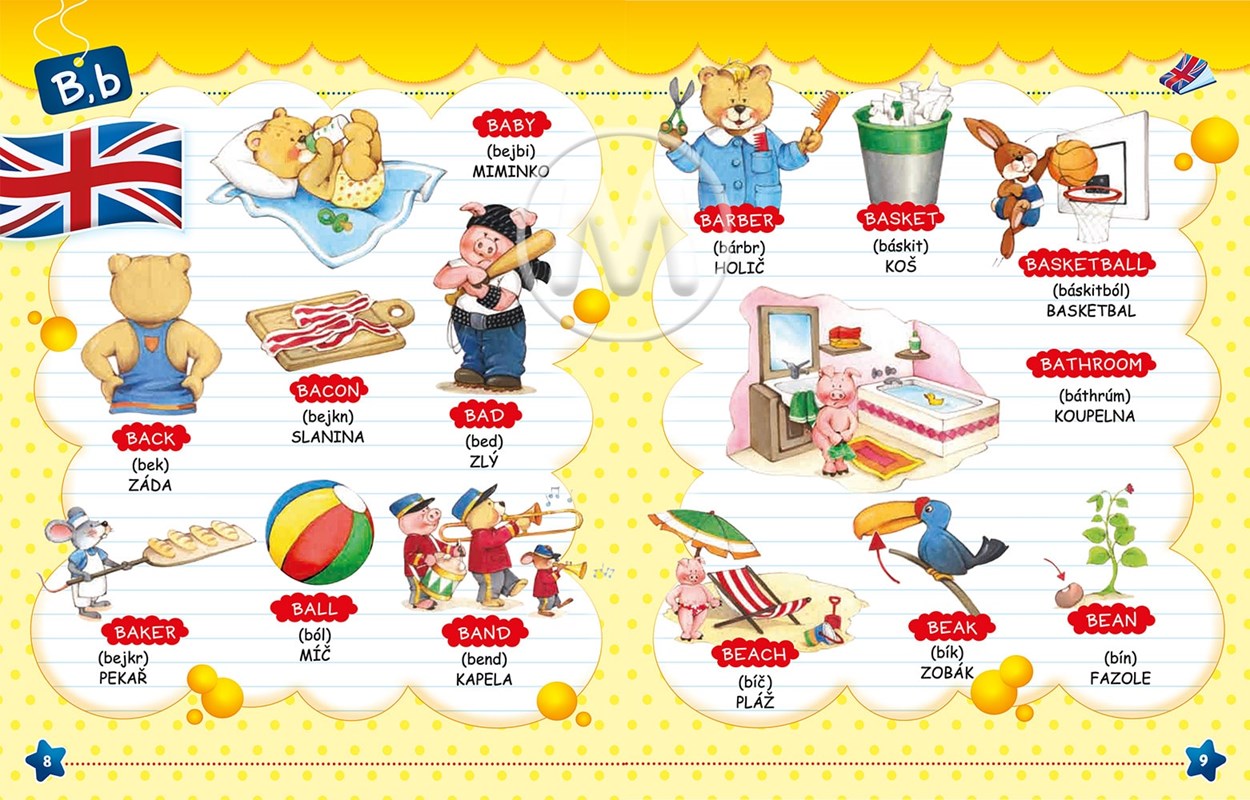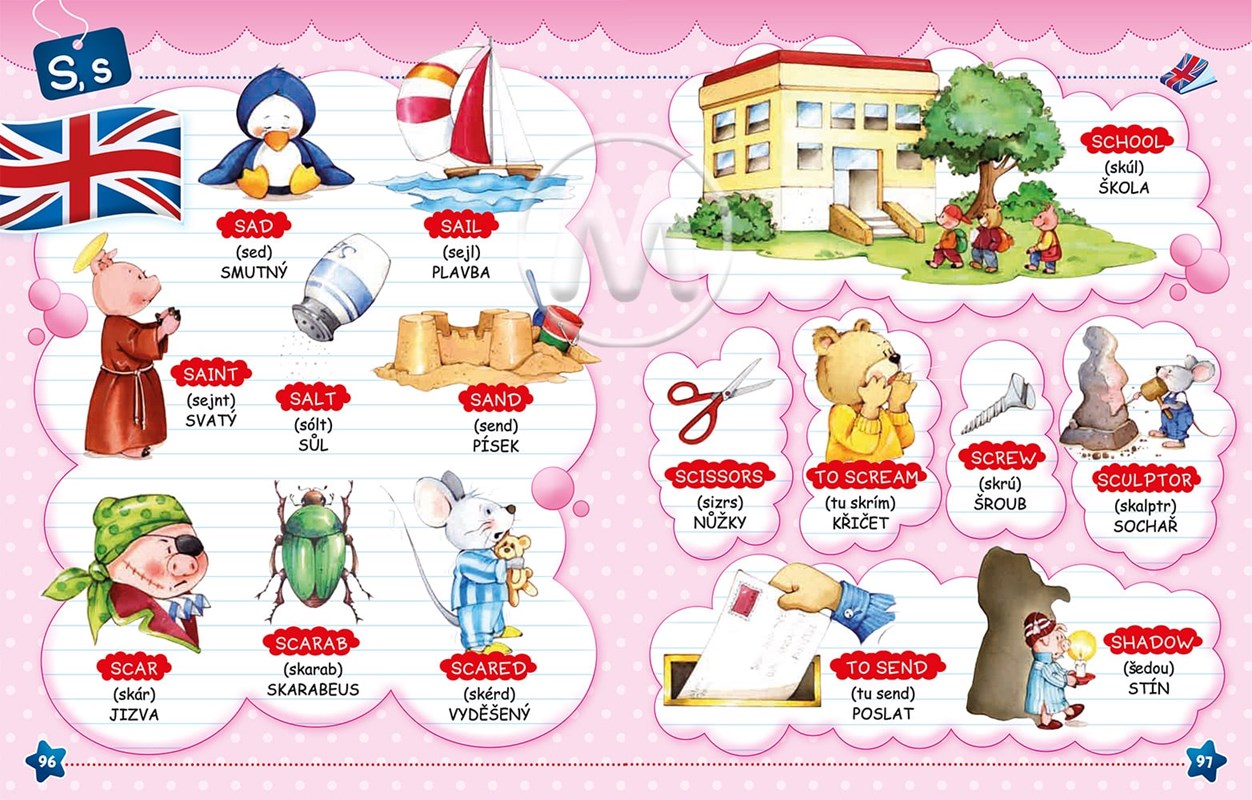 Tento slovník pomáhá dětem poznat a naučit se nejpoužívanější slova v angličtině. Roztomilé a barevné ilustrace spolu s výslovností pomáhají dítěti rychleji a jednodušší si osvojit učené slovo. Z angličtiny se tak stává zábavná hra!