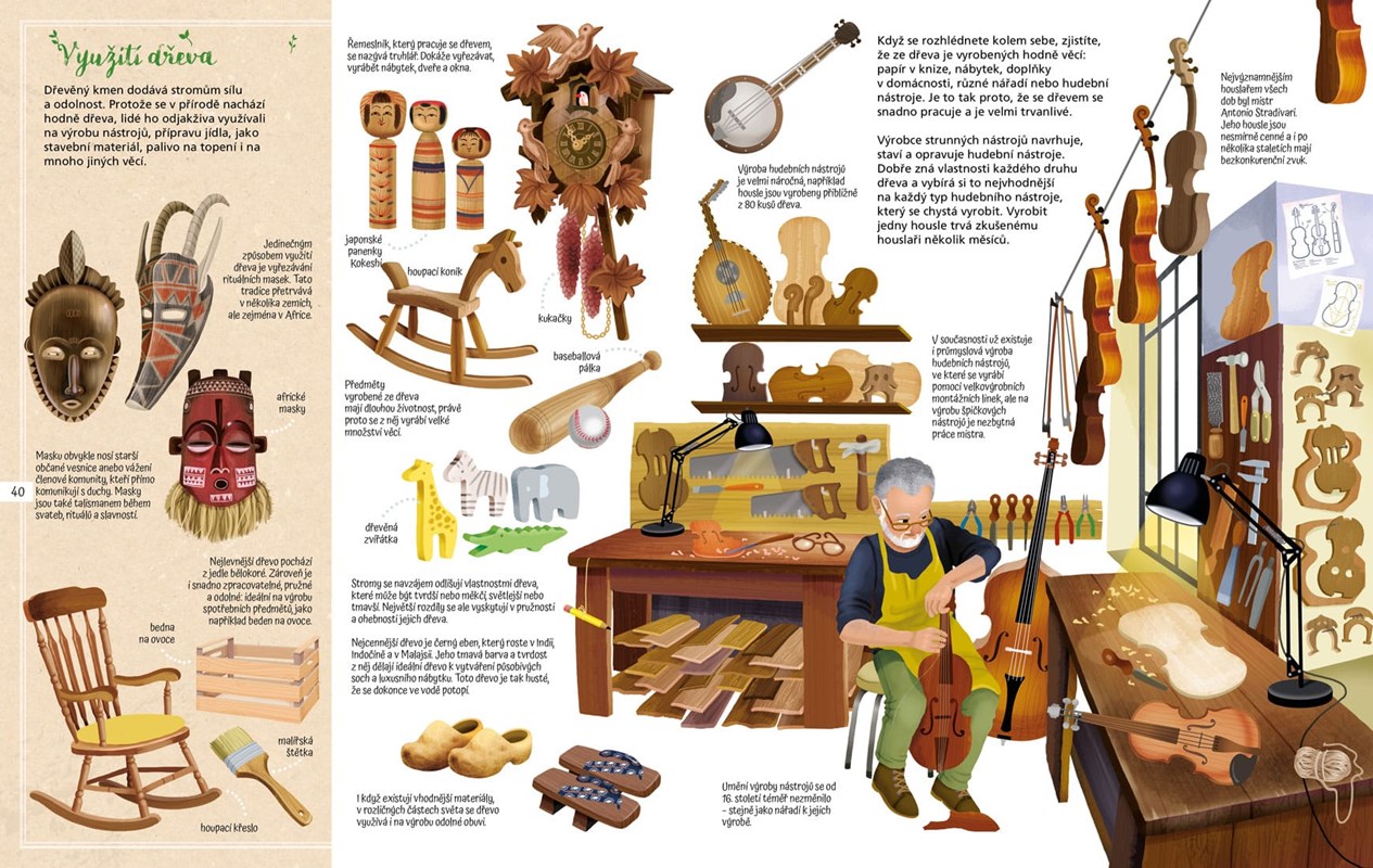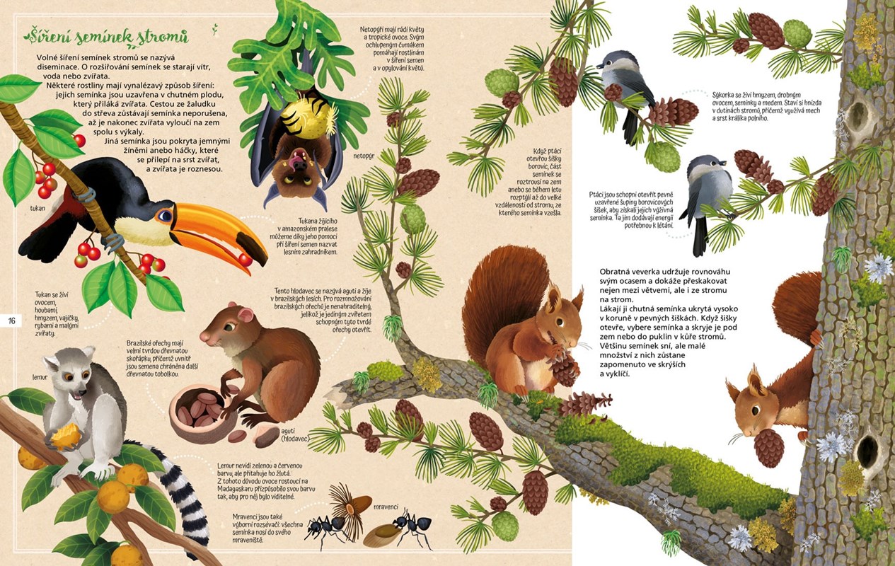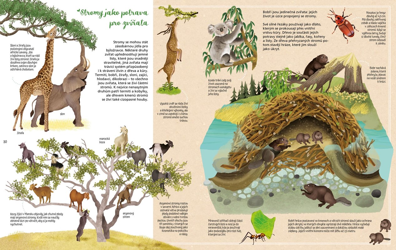 Díky této knize se dozvíš, jak se rodí les a jaká zvířátka jej obývají. Můžeš si také přečíst o různých stromech světa, o jejich nádherných květech, chutném ovoci i o dalších vzácných darech, jakými je papír, dřevo, olej, guma a dokonce i lahodná čokoláda.