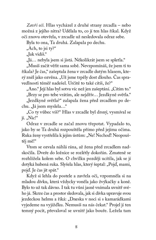 Kamarádky Anne, Lisa, Linda a Alex bývaly neporazitelné a jako Jezdkyně světla chránily Jorvik před zlem. Ale léto je změnilo. Všechny čelí novým snům, pochybám i tajemstvím. Když se znovu setkají, nic už není jako dřív. Lisa sní o životě v Texasu, Linda si myslí na studium v Oxfordu, Anna cosi skrývá a jediná, kdo nepochybuje o jejich poslání, je Alex. Jenže temnota nespí a brzy se ukáže, že kamarádky a jejich koně čeká úkol, o jehož důležitosti neměly nejmenší tušení.