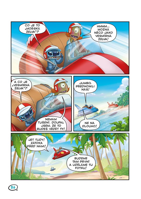 Lilo a Stitch vyráží na parádní závod na ostrově a čeká je spousta zábavy a napínavých dobrodružství! Naskočte s nimi do vznášedel, vypravte se na průzkum a pomozte jim vypátrat všechna skrytá místa a předměty. Závodníkům zkříží cestu nejen mimozemšťánkova kamarádka Angel, ale i dávný protivník. Série Můj první komiks je určena pro děti od 6 do 8 let, které už čtou samy. Příběhy jsou jednoduché a srozumitelné a mají vhodnou délku pro malé čtenáře. S komiksovými příběhy o oblíbeném mimozemšťánkovi půjde dětem čtení samo!
