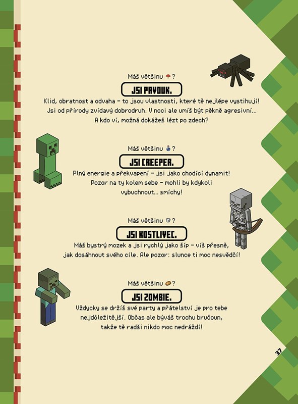 Čekají tě desítky her a úkolů – od omalovánek, testů, které ti prozradí, jaký typ hráče vlastně jsi, až po seznam příšer, které si můžeš odškrtnout, jakmile je porazíš. Nechybí ani tvořivé nápady na vyrábění, foto výzvy, kvízy a přehled těch nejdůležitějších receptů na craftění.