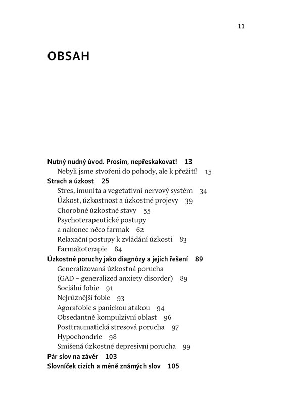 „Každý má svůj strach…“ Tahle věta z Kiplingovy Knihy džunglí je klíčem ke všem emočním problémům z okruhu strachu a úzkosti. Z evolučního hlediska jsou strach a úzkost velmi prospěšné, protože přicházejí ve chvílích ohrožení a díky nim je lidský mozek neustále připraven čelit nebezpečí. Problém nastává, když se tyto pocity objevují v důsledku nepřiměřeně malých podnětů, nebo dokonce přicházejí samy od sebe. Je to i váš případ? Chcete se dozvědět, jak si strach a úzkost nepřipustit k tělu a vybudovat si s nimi zdravý vztah? S renomovaným psychiatrem Radkinem Honzákem poznáte téma strachu z různých úhlů a zjistíte, jak pracovat se svými emocemi i ve složitých situacích.