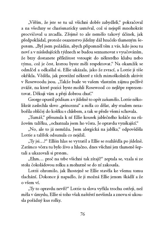 Která holka by se nechtěla alespoň na chvíli stát princeznou? Lottie Pumpkinová o tom ve svých představách snila mnohokrát. Pak ji osud svede do jednoho pokoje v internátní škole Rosewood s Ellií Wolfovou. Princeznou, která touží po pravém opaku – být úplně obyčejnou holkou. Zdá se, že splnit si své sny nebude nic složitého. Stačí si vyměnit role a je to!
