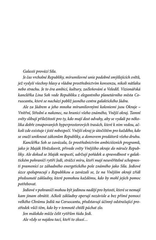 Za hranicemi Republiky totiž roste smrtelné nebezpečí. Hrozba se skrývá v temnotě, daleko od světla zlatého věku, a živí v sobě tajemství, které dokáže zasít strach i do srdcí Jediů.
