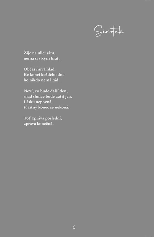 Sbírka poezie, která vás zasáhne. Ponořte se do slov, která vás přimějí cítit, a prociťte radosti, lásku, bolest i trápení.