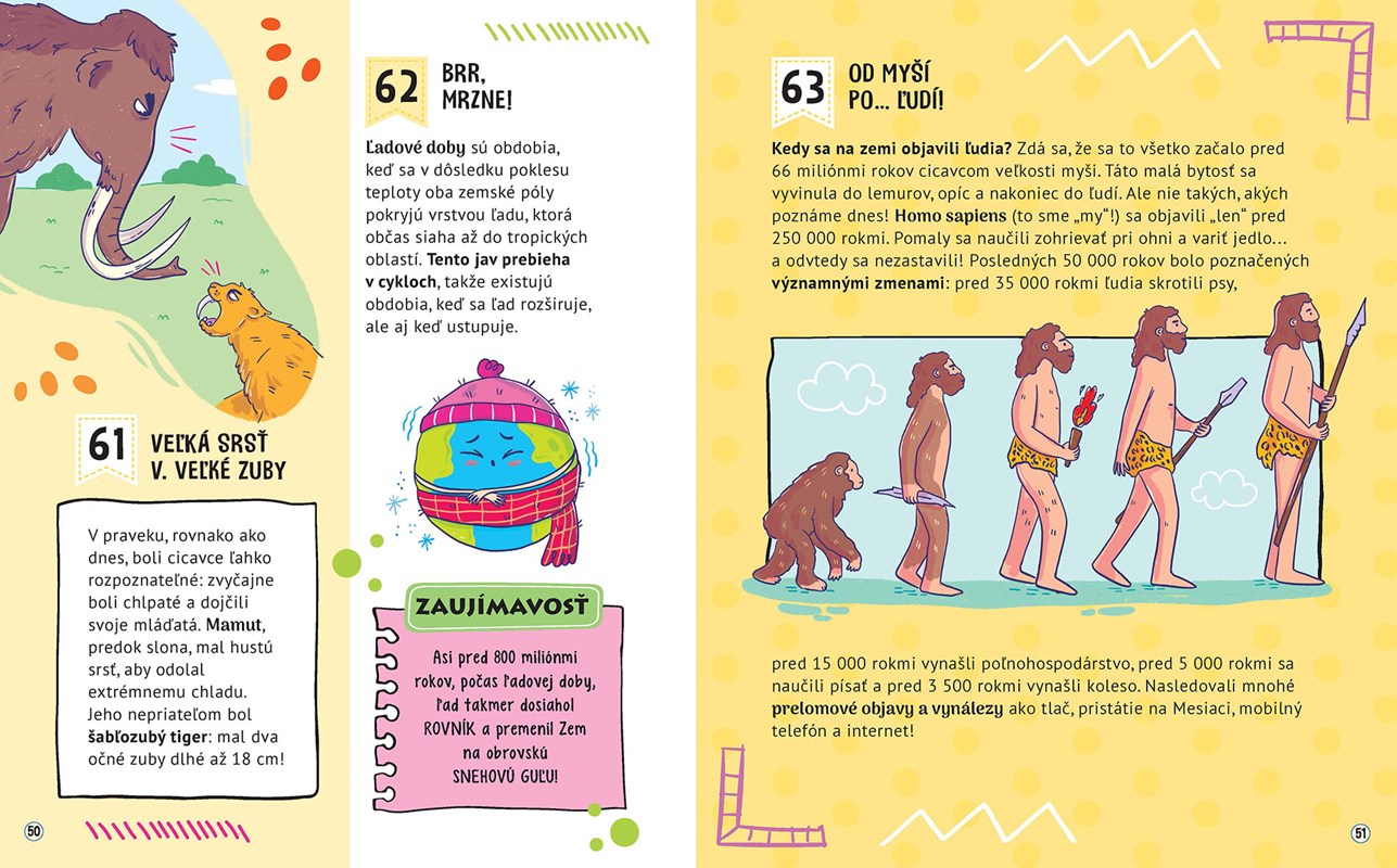Viete, kedy sa zrodila planéta? Alebo prečo existujú ročné obdobia? Odhaľte tajomstvá našej planéty od jadra Zeme až po jej atmosféru. Je to úžasné miesto, ktoré je domovom viac ako 9 miliónom druhom foriem života. Prečítajte si o pohoriach a vulkánoch, moriach a riekach, o ekosystéme aj o tom, ako do života na Zemi zasahuje človek. Preskúmajte našu planétu pomocou tejto knižky, v ktorej nájdete 101 zaujímavých a úžasných faktov aj otváracie okienka skrývajúce nové záhady.