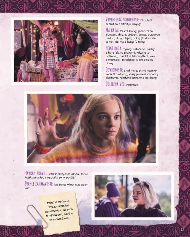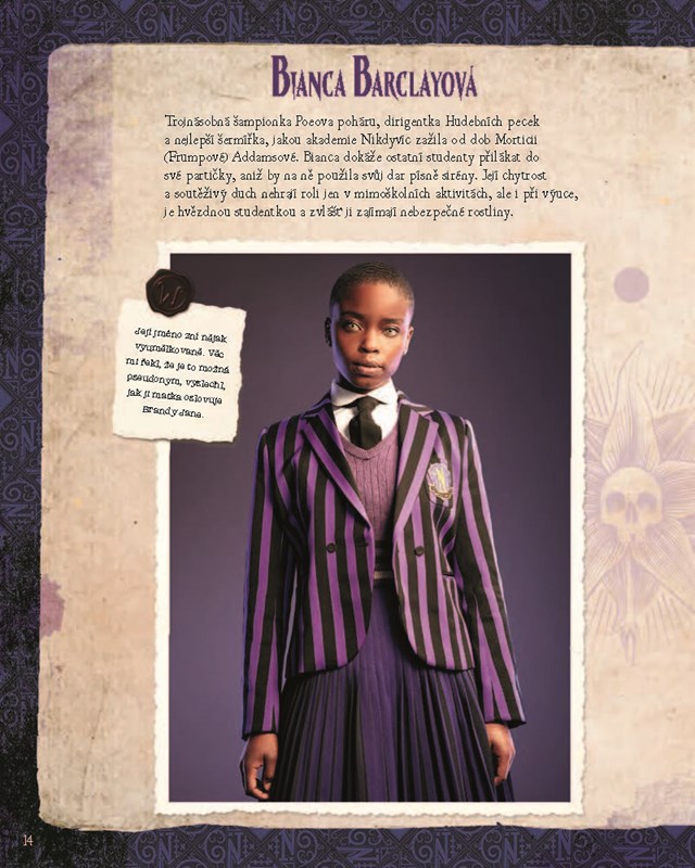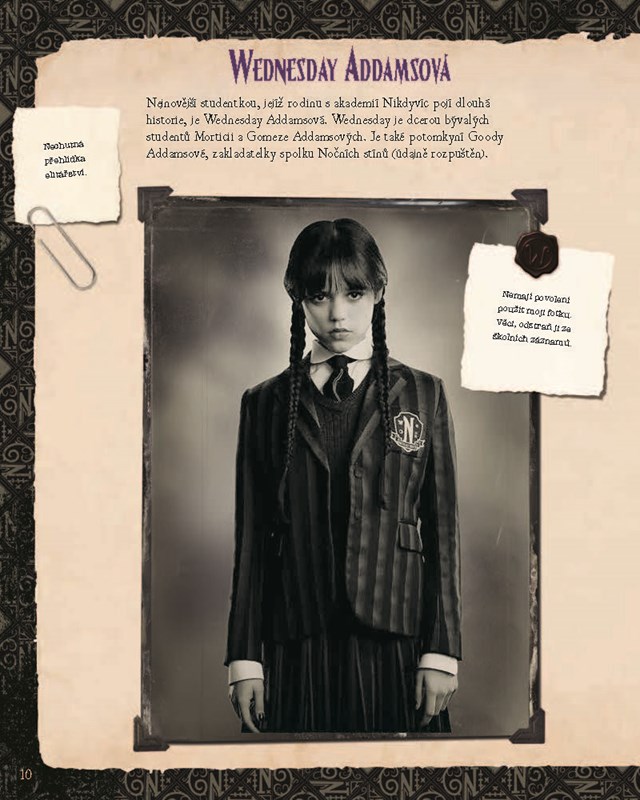 Uvnitř této obsáhlé příručky najdete vše, co potřebujete vědět o nadpřirozených studentech, zaměstnancích a absolventech akademie Nikdyvíc. Ponořte se do temné a podivné historie města Jericho, jeho zakládajících rodin a odhalte, jak akademie Nikdyvíc vznikla. Svět úspěšného seriálu Wednesday čeká na své nejděsivější čtenáře!