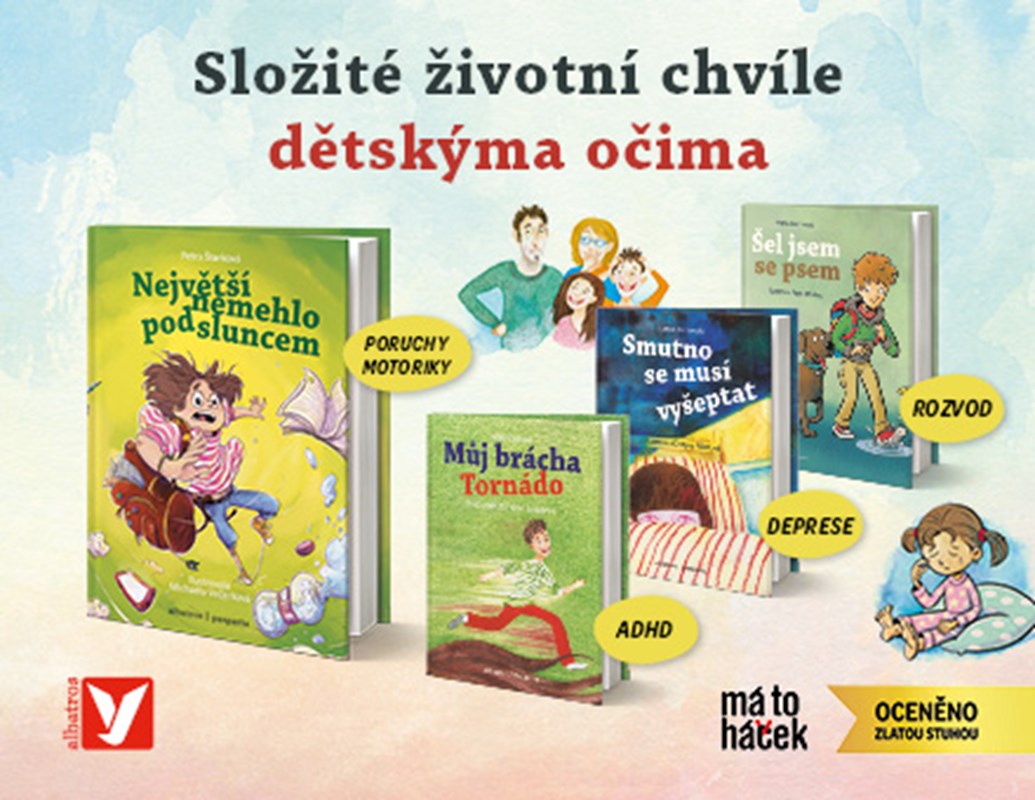 Celá edice získala v roce 2021 prestižní ocenění Zlatá stuha v kategorii Nakladatelský počin. Jaké konkrétní příběhy v ní najdete? Mezi oblíbená vyprávění od Ivony Březinové patří Řád sladkého sněhuláka o životě s cukrovkou, Ňouma z áčka o chorobné nesmělosti nebo tituly Ťapka, kočka stěhovavá a Šel jsem se psem, které zpracovávají téma rozvodu.