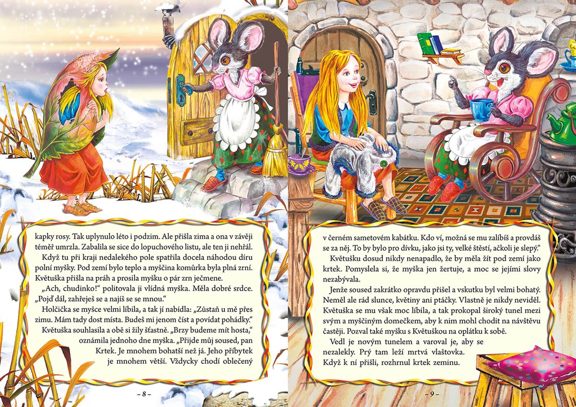 Známé i méně známé pohádky z celého světa upoutají větší i menší děti. Ty se mohou se zájmem začíst do zábavných, napínavých i poučných příběhů o Palečkovi, ošklivém káčátku, kocourovi v botách, o vlku a sedmi kůzlátkách, Alibabovi a čtyřiceti loupežnících, Sněhurce a sedmi trpaslících, Červené karkulce a o mnohých jiných pohádkových hrdinech. Kouzlo těchto příběhů podbarvují nádherné ilustrace, které se dětem určitě zalíbí.