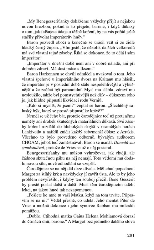 V tomto románu sledujeme složitý a propracovaný svět Franka Herberta v dobách vedoucích ke klíčovým událostem Duny. Zatímco syn imperátora Elrooda plánuje královraždu, mladý Leto Atreides odjíždí na roční studijní pobyt na planetě strojů Iks. Planetolog Pardon Kynes mezitím pátrá po tajemstvích Arrakis a osmiletý otrok Duncan Idaho je pronásledován krutými lovci v děsivé hře a slibuje si, že unikne a pomstí se svým mučitelům. Nikdo z nich si však nedovede představit, co pro ně má osud připraveno v záloze a jakou roli budou hrát při formování historie