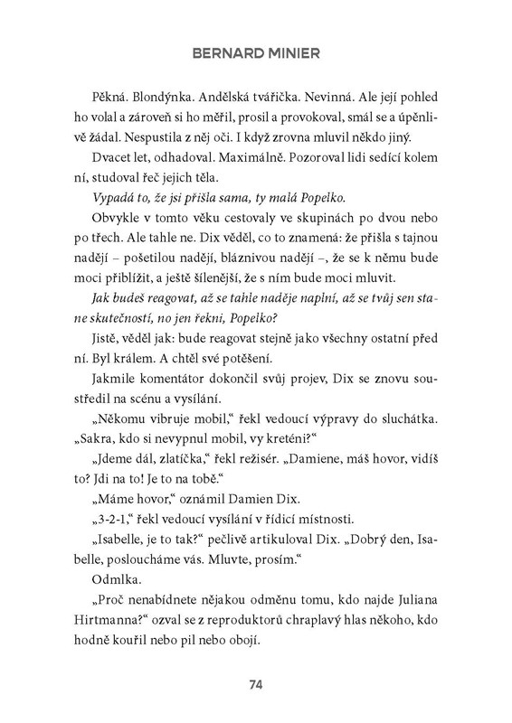 Devátý případ ostříleného kriminalisty Martina Servaze v novém, netrpělivě očekávaném thrilleru Bernarda Miniera. Když se na internetu začne šířit true crime podcast o nepolapitelném sériovém vrahovi Julianu Hirtmannovi, brzy se kolem jeho příběhu vytvoří mrazivý kult. Miliony posluchačů, blogerů a amatérských vyšetřovatelů pátrají po detailech jeho zločinů – a jejich posedlost živí novou vlnu strachu. Jeho případ znovu ožívá v digitálním prostoru, kde se fakta mísí se spekulacemi a senzací. V okamžiku, kdy začnou mizet mladé ženy, vrací se komisař Martin Servaz opět do akce. Znepokojivé podobnosti s minulými zločiny nelze ignorovat. Stopy vedou do světa, kde se realita ztrácí v mediálním šumu, falešných indiciích a honbě za pozorností. Je Hirtmann zpět? Nebo někdo jen dokonale využívá jeho legendu? Děsivá pravda, kterou Servaz postupně odhaluje, naznačuje, že největší nebezpečí může spočívat právě v posedlosti nekompromisním zlem...