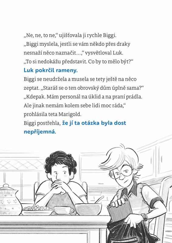 Vyprávění Bigginy pratetičky o půlnočním řádění modrých draků měli všichni za poněkud popletené povídačky staré dámy. Když ale kamarádi z Klubu Tygrů tetičku na jejím malém zámku navštíví, nestačí se divit. Jsou draci, které na vlastní oči viděli, opravdoví a skutečně tady straší? Je čas pořádně to vyšetřit!