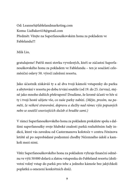Lia Baker má jediné přání. Zastavit čas a zabránit tomu, aby její kamarádky odjely na vysokou a ona zůstala sama jen s matčinou úzkostí a v práci, kterou nenávidí. Když vyhraje účast v honbě za pokladem k výročí legendárního parku Fableland, otevře se jí svět, kde ožívají oblíbené příběhy – a kde může začít psát ten svůj.