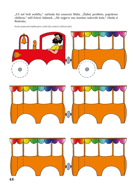 Dítě bude spolu s pastelkami Boženkou a Máňou plnit zajímavé úkoly vyplývající z příběhu, který mu budete číst. Tak se naučí pozorně poslouchat, rozumět slovům, dozví se zajímavé věci o přírodě, zvířatech i lidech. Každý úspěch bude znamenat povzbuzení pro další hru. Pro nás dospělé to však znamená vést dítě k přirozenému postupu a respektovat jeho individuální vývoj. Jak postupovat, abyste spolu s dítkem měli radost ze společné práce, se dozvíte v autorčině dopise na konci knihy. Ten si nejdříve pozorně přečtěte. Vyvarujete se tak přílišných nároků na dítě, uvědomíte si, jak je důležité projevit radost z výtvoru, který je zpočátku – očima dospělého – málo zdařilý. Proto postupujte pomalu i v případě, že bude dítě chtít pokreslit všechny strany najednou. Doporučuji každý den jednu dvě stránky a čtení na pokračování. Dítě i vy se budete těšit na další společné cvičení, v němž můžete po vyplnění první „knihy kreslení“ pokračovat v dalších publikacích, které vám autorka také doporučí.