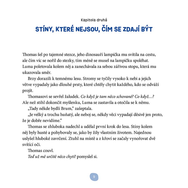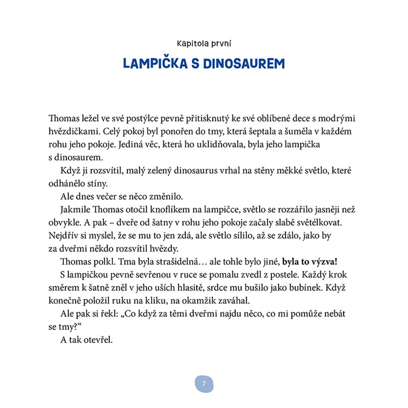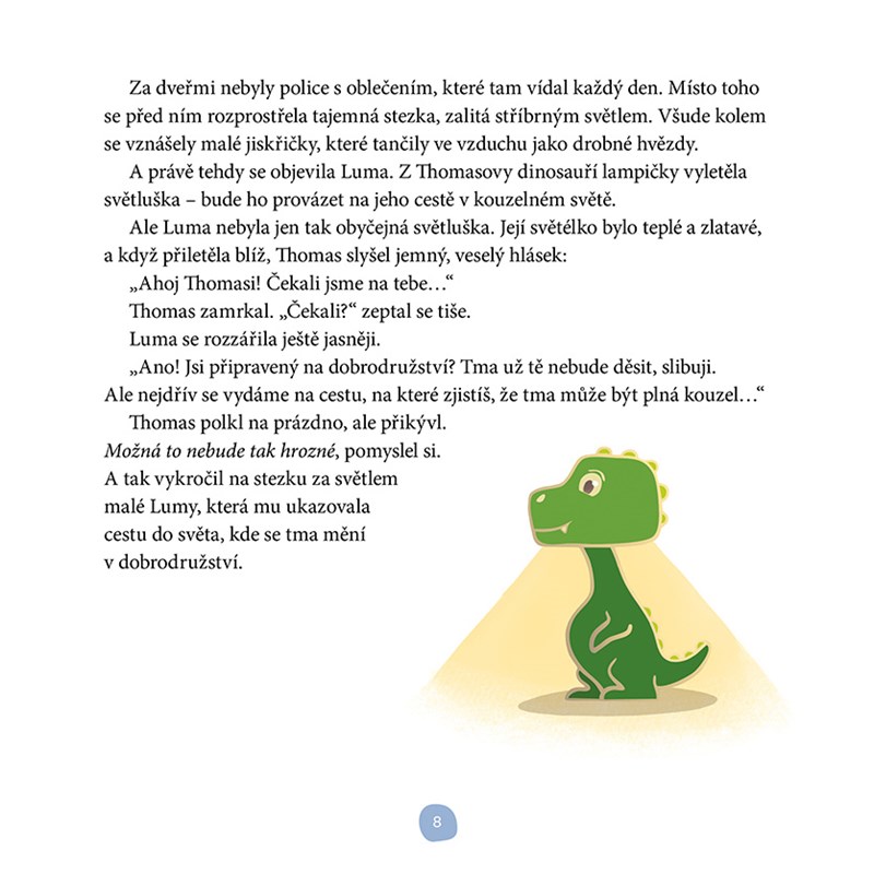Thomas se tmy bál, dokud jeho lampička jednoho večera neotevřela bránu do kouzelného světa. Tam se setkává se světluškou Lumou, medvědem Brumou, Tygrem noci a dalšími bytostmi, které mu pomohou pochopit tajemství stínů a ukážou mu, že tma nemusí být strašidelná.