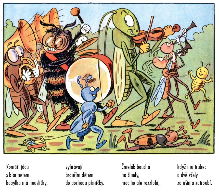 Komár s čmelákem a kobylkou hrají v orchestru, chrobáci zápasí na žíněnkách,