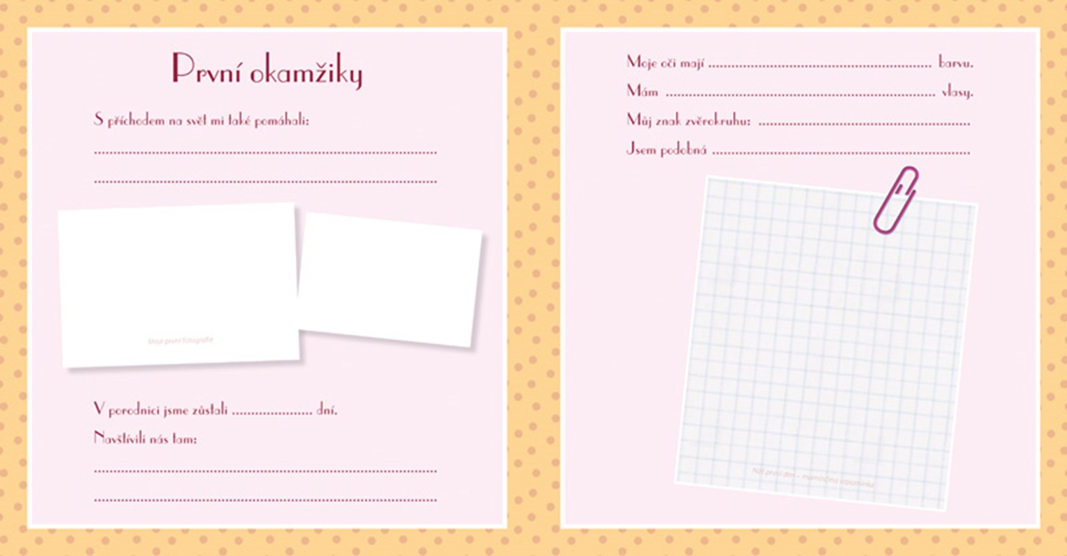 Z knihy Album naší holčičky si můžete vytvořit originální deníček, který bude vaši holčičku provázet od narození až po první krůčky. Můžete si v něm zaznamenávat všechny důležité události, první slůvka, nejmilejší hračky a oblíbené činnosti. Kniha nabízí dostatek místa na vlepení fotografií vaší holčičky, fotografie z ultrazvuku, otisk ručičky, vložení pramínku vlasů nebo záznam různých zážitků. Kniha je originální i tím, že vložením fotografie vaší holčičky do prostoru na obálce knihy bude album už jenom její! Kniha se pro vás a vaše děťátko stane originální sbírkou těch nejkrásnějších vzpomínek, ke kterým se budete rádi vracet.