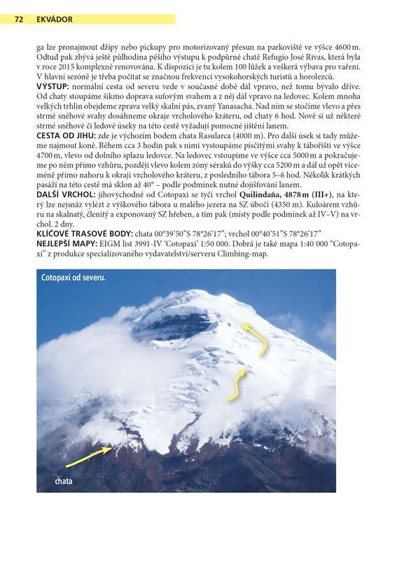Tato souborná a do značné míry unikátní publikace o andských vrcholech pokrývá i mnohé oblasti And, které dosud nebyly nikde blíže popsány. V angličtině se dočkala již čtvrtého vydání a zatím byla přeložena do francouzštiny, španělštiny, polštiny - a nyní také do češtiny. Autor, John Biggar, přitom za 25 let svého aktivního působení v Andách osobně vylezl a na lyžích zdolal přes 300 vrcholů s nadmořskou výškou nad 5000 m. Jedinečný souborný průvodce po významných vrcholech And; Detailní údaje k výstupům na 100 hlavních andských šestitisícovek; Popisy výstupů na víc než 300 dalších vrcholů; Přes 240 zákresů tras a 80 schématických mapek; Množství názorných situačních snímků; Bohaté informace také pro skialpinisty