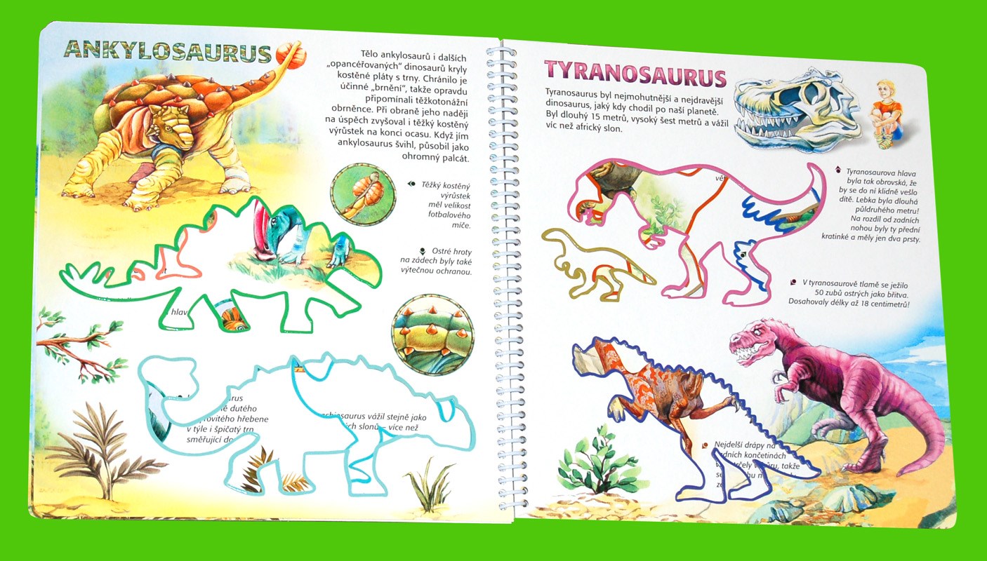 Tahle knížka pomůže dětem pomocí šablon věrně nakreslit dinosaury a navíc o nich prozradí mnoho zajímavého. Obrázky si pak můžou dokreslit, ale i doplnit mnoha figurkami a hrát si s nimi. V sérii ŠABLONY vyšly i další zajímavé tituly: Zvířata v zoo, Zvířata na pólech a v oceánech, Zvířata lesů a řek.