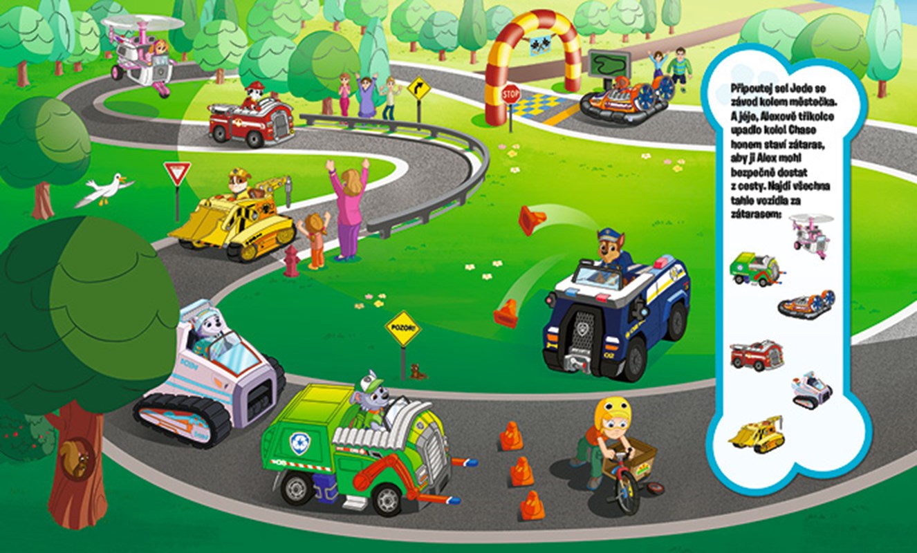 Tlapková patrola znovu zasahuje! Přidej se ke svým kamarádům a pátrej s nimi po věcech schovaných v městečku a jeho okolí. Pak tě čekají další úkoly, při nichž si procvičíš počítání, rýmy i určování tvarů a barev. V edici Hledej s Tlapkovou patrolou vychází také: Tlapky na stopě, Pátrej se Skye!