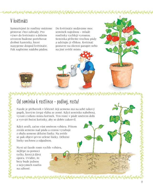 Průvodce po zahradě pro malé a začínající zahradníky. Stát se zahradníkem není nic složitého: stačí trocha půdy, hrst semínek a špetka trpělivosti, než vyraší první rostlinky – v květináči na terase nebo na zahradě.