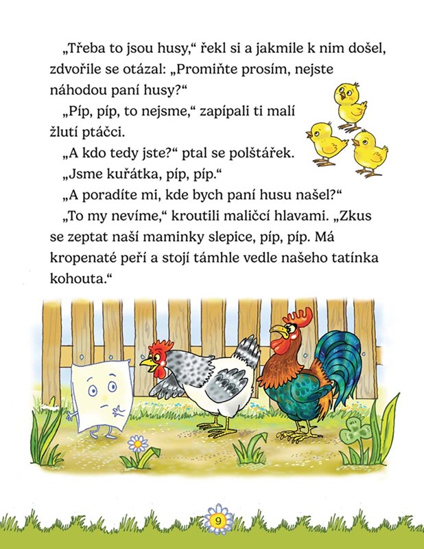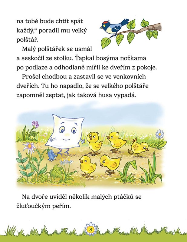 Malý polštářek není vycpaný, a tak si ho nikdo nedá pod hlavu. Bílý hrneček je zasunutý vzadu za barevnými hrnky a nikdo z něj nepije. A modrý deníček jen tak leží na poličce a nikdo si do něj nezapisuje. Žádný z nich však nechce být sám a smutný. Pojďme se spolu podívat, zda polštářek uspěje na dobrodružné cestě za husou pro peří a jestli se pro bílý hrneček najdou barvy i někdo, kdo z něj bude pít. A co myslíš, jak to dopadne s modrým deníčkem? Naplní se nakonec vzpomínkami na hezké zážitky? Laskavé příběhy doplňují půvabné ilustrace Antonína Šplíchala.