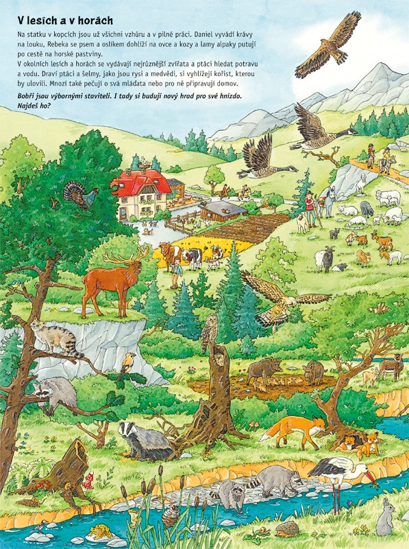 Navštivte různá zajímavá místa naší planety a seznamte se s jejich obyvateli. Prozkoumejte báječné obrázky, na kterých se to různými živými tvory jen hemží. Pokaždé na nich najdete něco nového – třeba i to, co se ukrývá. Prohlédněte si mláďata různých zvířat i obydlí, která si zvířata hledají nebo budují. Lesy, hory, džungle, savany, moře a dokonce i zemské póly čekají na vaši návštěvu.