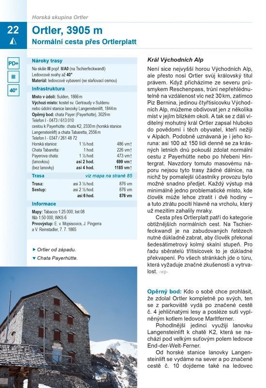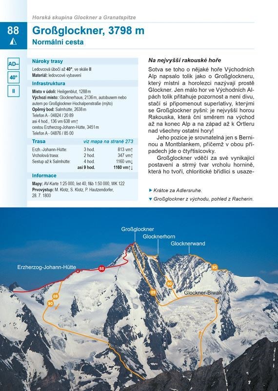 Aktuální průvodce velkými vrcholy Východních Alp je knihou nejen na čtení, ale i na snění. Jeho stránky vypovídají o aktuální podobě neustále se měnícího horského světa a současně napovídají, že tento svět slibuje mnoho velkolepých příležitostí i do budoucna. U každé túry fotografie nástupu s grafickým vyznačením cesty; Mapy v měřítku 1:50 000 u všech tras; Klasifikace obtížnosti podle pravidel UIAA; Podrobné, vysoce aktuální a ověřené popisy tras; Nepostradatelná publikace jak pro ambiciózní začátečníky, tak pro vášnivé vysokohorské alpinisty se zkušenostmi z ledového i skalního lezení.