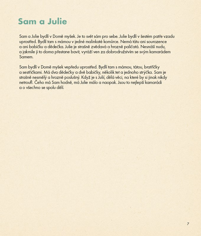 Sam a Julie bydlí v Domě myšek. Je to svět sám pro sebe. Julie bydlí v šestém patře vzadu, jen s mám...
