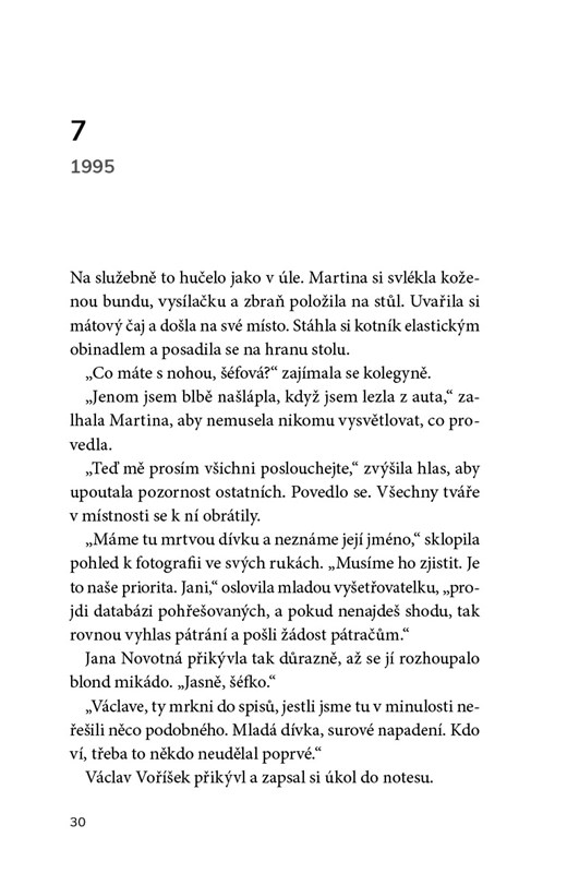 Liberecká kriminálka řeší případ, který šokuje i zkušené policisty. Na dně lomu je nalezeno zohyzděné tělo třináctileté Terezky. Brutální vražda paralyzuje celé město, vyšetřování kapitánky Martiny Vránové a podporučíka Filipa Bauera je však navzdory maximálnímu nasazení bezvýsledné. Po třiceti letech se případ znovu otevírá a spolu s ním i staré rány. Vrah po sobě totiž nenechal jen mrtvé tělo, ale i jizvy, které poznamenaly celou rodinu. Soukromý vyšetřovatel Oliver Berka je poslední šancí, jak může Terezčina matka zjistit pravdu. Čím víc se však k jejímu odhalení blíží, tím je realita pro všechny bolestivější a nepříjemnější. Jakou roli v případu sehrál Terezčin otec, který je dlouhodobě pohřešovaný?
