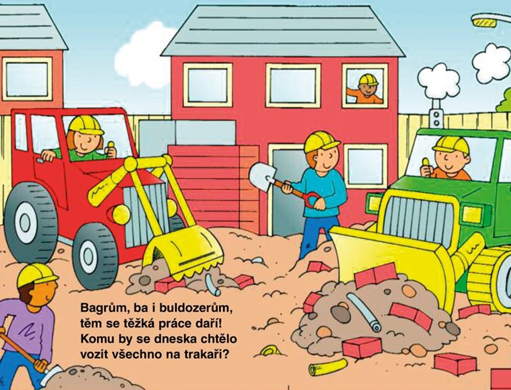 Leporelo s puzzly a krátkými veršíky, které udělá radost každému klukovi. Kromě názorných obrázků staveniště a snadno zapamatovatelných básniček si čtenáři můžou přímo na stránkách složit skládačku. Puzzle si také mohou nalepit na karton a obrázkem si pak vyzdobit svůj pokojík.