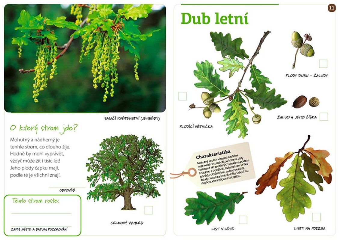 Zajímají tě stromy, které můžeš vidět při procházkách? Chceš se je naučit poznávat? Tento sešit tě seznámí se 14 stromy, které rostou v našich lesích a parcích. Dozvíš se, jak je na dálku rozeznat podle celkového vzhledu i jak je zblízka s jistotou určit podle jejich listů, květů i plodů. A to není všechno! Najdeš tu také stovku detailních ilustrací, které si snadno obkreslíš. Stačí kresbu zakrýt průsvitným pauzovacím papírem, který najdeš v knížce, tužkou nakreslit obrysy a pastelkami vybarvit. Můžeš se pobavit hledáním odpovědí na veršované hádanky o každém stromě a své znalosti prověřit v zajímavém závěrečném testu. Staň se odborníkem na stromy v našich lesích a parcích! V sérii Poznej a nakresli vycházejí i další zajímavé knížky: Zvířata našich lesů, Ptáci naší přírody a Ptáci našich lesů.