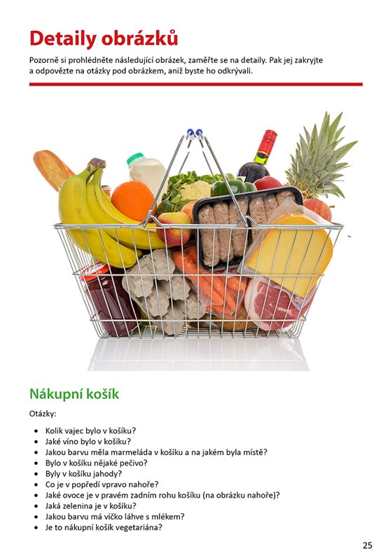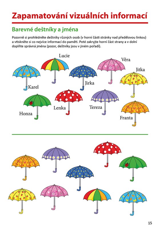 Procvičování mozku různými způsoby je velmi důležitý faktor v prevenci poruch paměti a je přínosné v každém věku. Kniha obsahuje úkoly na nižší až střední úrovni obtížnosti, vždy je uvedeno 5 variant pro jeden typ cvičení. Samozřejmostí je adekvátní velikost písma i obrázků a barevné provedení. Své řešení si může čtenář sám zkontrolovat na konci knihy.