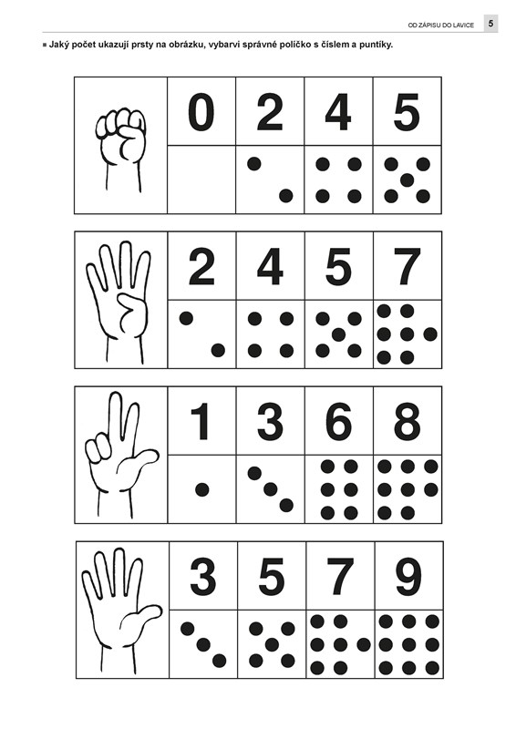 Obsahuje 38 pracovních listů se cvičeními, které zábavnou formou rozvíjejí předmatematické představy – počítání na prstech v oboru 1 až 10, základní geometrické tvary, posloupnosti – kdo je první, poslední, uprostřed. Dále kdo je větší (těžší, delší), menší (lehčí, kratší), pravolevou orientaci, orientaci v prostoru (před, za, nad, pod, vedle…), logické uvažování apod. Úlohy jsou koncipovány tak, aby se zároveň zapojilo co nejvíce smyslů a rozvíjela se jemná motorika i grafomotorika. Dítě bude dále schopné rozeznat základní geometrické tvary, zapamatovat si i číslice a jejich tvary, jejich písemnou podobu, experimentovat, rozvíjet představivost, samostatně uvažovat, vyřešit úlohu, zamyslet se nad jejím řešením, logicky uvažovat a zlepšit pozornost, naučí se soustředit na práci.