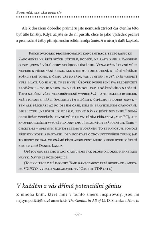David Gruber je zcela výjimečný zjev mezi našimi autory, novátory, lektory, školiteli, poradci a kouči. Od počátku jeho profesionální dráhy nezávislého lektora v roce 1986 až do převratu v roce 1989 v tomto oboru nepůsobil u nás nikdo jiný. Lidé měli k dispozici pouze jeho knihy, články, kurzy, přednášky, poradenství, dokonce tři televizní vzdělávací seriály, vše nesmírně populární. Ze světa metod přenesl své žáky, diváky a čtenáře do světa multimetod (psychovzorců), což lze považovat za revoluční skok. Každodenně ve své praxi jeho postupy s úspěchem využívá množství lidí. Být jeho žákem nebo čtenářem patří dnes už k samozřejmostem každého duševně pracujícího člověka.