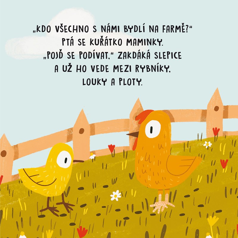 Zvuková knížka s půvabnými jednoduchými ilustracemi, v níž není třeba mačkat žádné tlačítko, stačí jen otočit stránku a hned se můžeš zaposlouchat do zvuků na farmě!