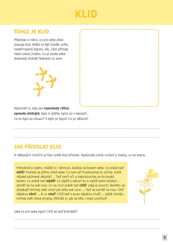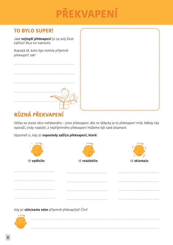 Při vyplňování nemusíš nic předstírat. Ber sešit jako místo, kde můžeš být sám/sama sebou. A když budeš chtít, můžeš se o to, co objevíš, podělit s rodiči nebo kamarády. Ať právě prožíváš radostné obdo bí, nebo se ti zrovna moc nedaří, tenhle sešit ti pomůže lépe porozumět sobě i ostatním.